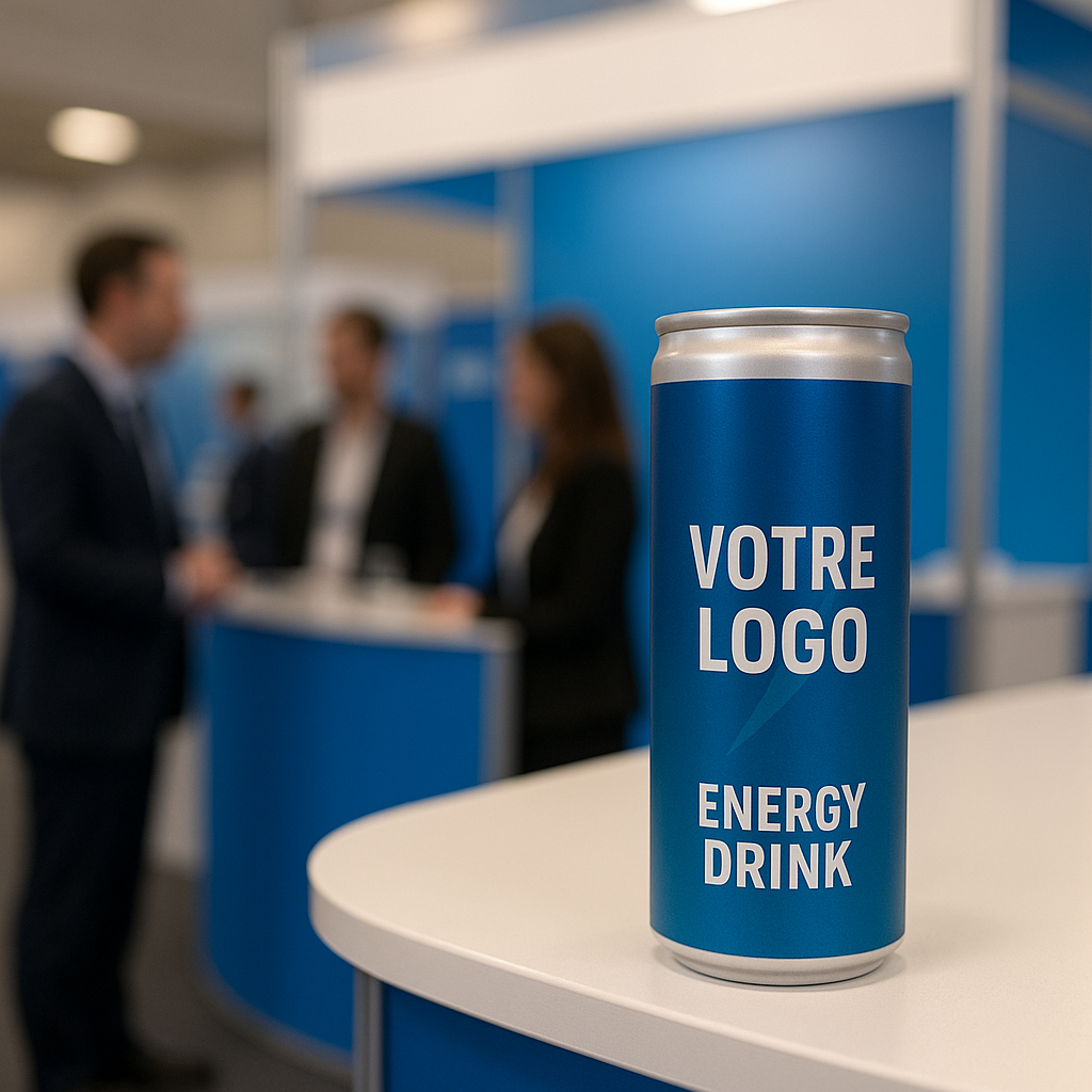 Événementiel : offrir une boisson énergisante personnalisée lors d’un salon professionnel.